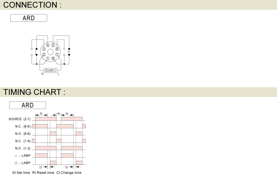 Prev Timer Star-Delta Timer ARD STAR-DELTA TIMER Add to inquiry Inquiry list Description Wiring and timing diagrams Overall dimensions or other Download Design for induction motor starter (Y-△) Made-to-order Y-to-△ change-time from 0.1S to 0.5S Y-to-△ change-time variable from 0 to 1S* Short reset time for repeat operations 30S and 60S standard time ranges CE certified Note: "*" indicates applicable to TRD-NC series only TRD/ARD Catalogue